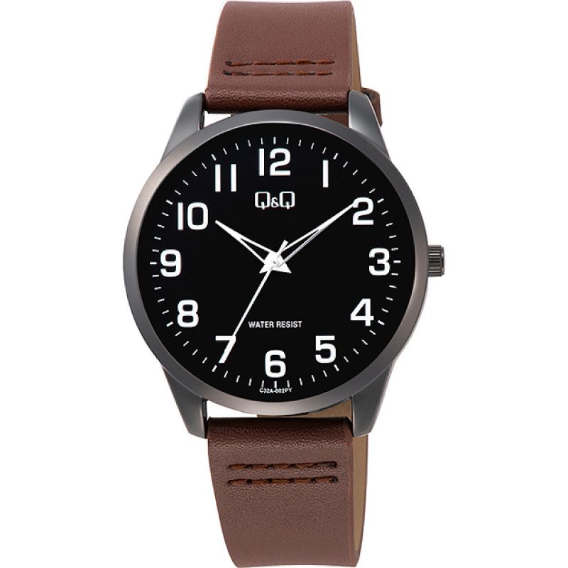 Мъжки часовник Q&Q C32A-002PY с Кожена каишка/верижка и Кварцов механизъм